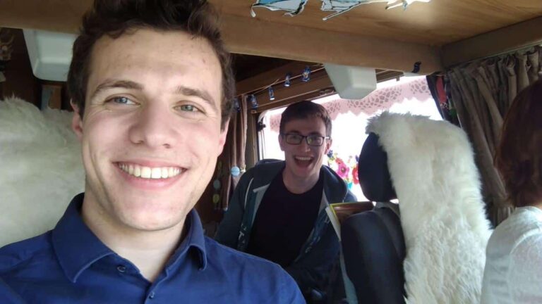 De volgende dag zou echter de liftwedstrijd plaatsvinden. Met mijn trouwe jaargenoot en liftpartner Johannes zouden wij als Team JoViVat moeiteloos de liftbokaal bemachtigen. Als ik op tijd was geweest tenminste… Het gebrek aan slaap speelde mij direct parten en na het verstrijken van het Leidsch kwartiertje verscheen ik op de startplek. Een hopeloze missie, zou je denken. Hierna raceten we naar Leiden Lammenschans om een lift de snelweg op te krijgen. Dit lukte gelukkig snel! We waren vertrokken! We lieten ons tactisch bij het grootste tankstation in de buurt van Rotterdam afzetten. Direct renden we het tankstation op om mensen te vragen of ze ons een lift konden aanbieden. Keer op keer kregen we een nee op deze vraag, totdat we langs een heel obscuur busje liepen.